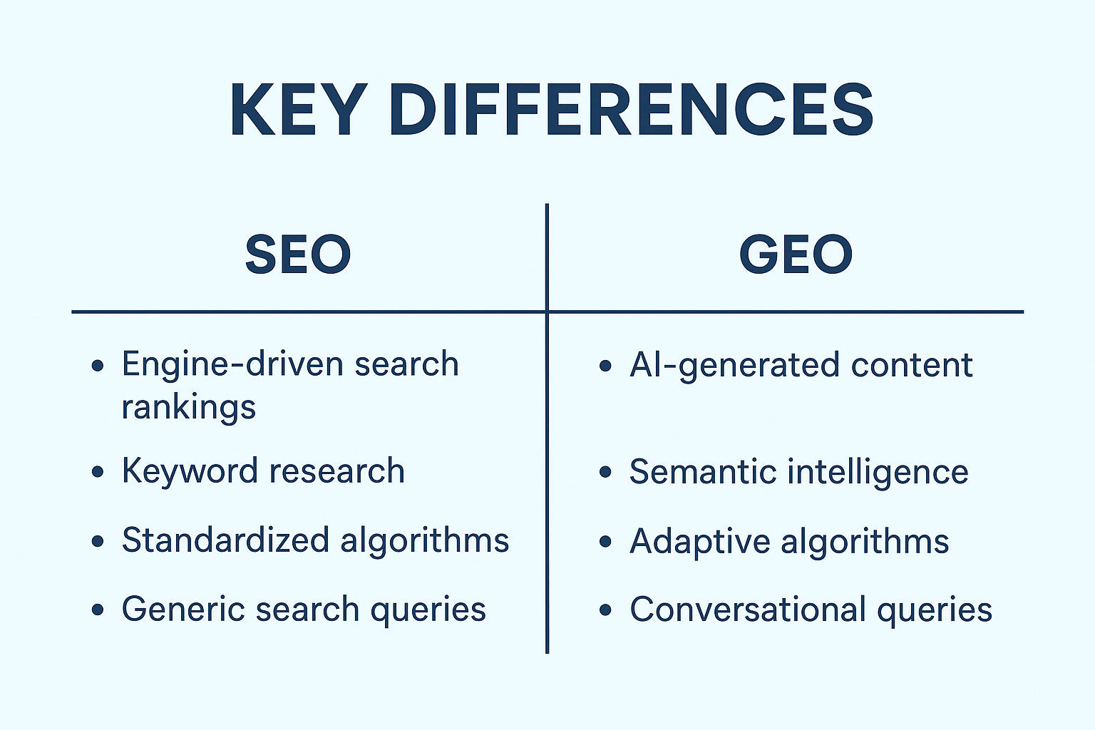 Think of it this way: SEO helps you rank on page 1 of Google. GEO helps you get quoted inside ChatGPT’s answer box.